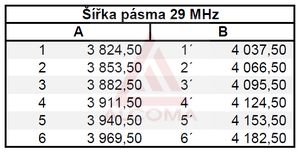 Kanálová tabulka pro pásmo 4 GHz (3,60 - 4,20 GHz)